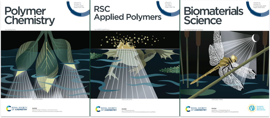 The year prior, a Polymer Chemistry cover article introduced a resin formulation that uses polymerization-induced self-assembly to generate nanostructured networks during light-based 3D printing and support tissue-scaffold applications.
